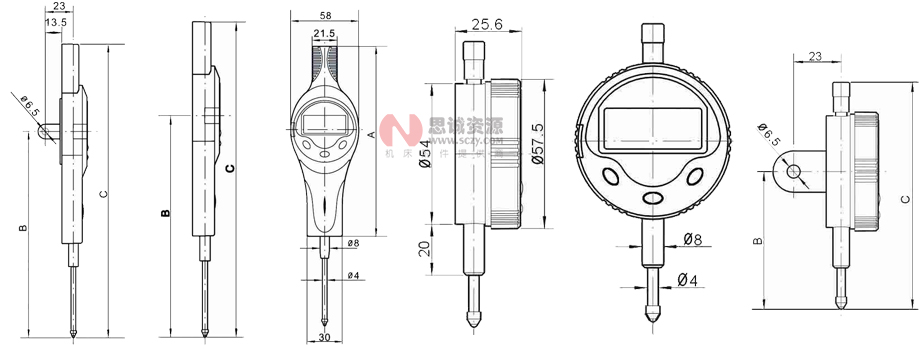 貨號(hào) NO. | 測(cè)量范圍(mm) | 分辨力(mm) | 精度(mm) | 測(cè)量力(N) | A(mm) | B(mm) | c(mm) |