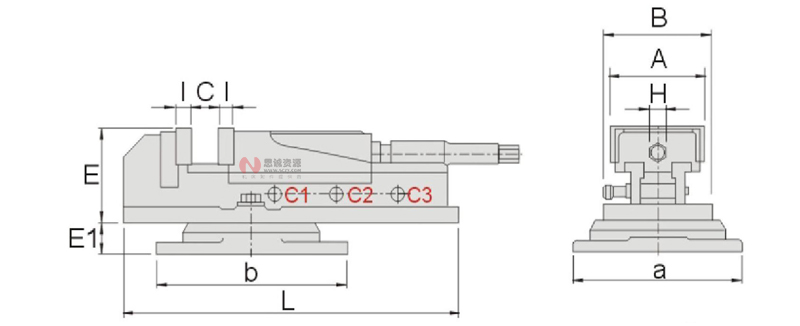 訂購編號 Order No. | 型號 Model | A | a | B | b | 夾持范圍 | E | E1 | H | I | L | 重量 N.W. | |||