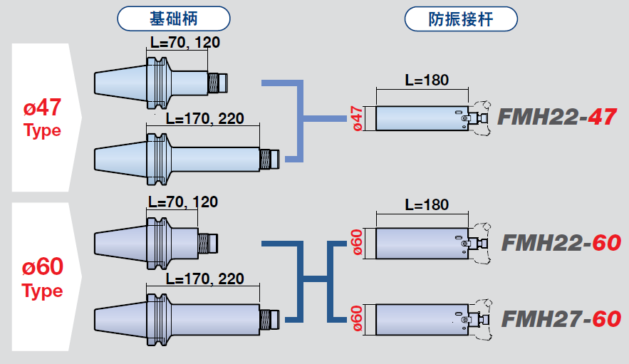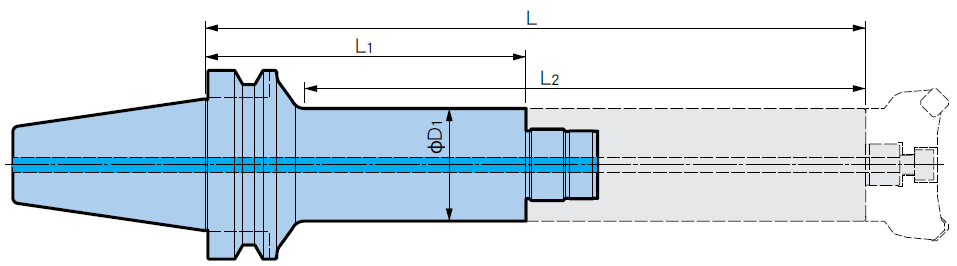 系統(tǒng)配置圖(BBT50 刀柄時)一把防振接桿(BBT/HSK刀柄共通)可以用于不同長度的基礎柄。