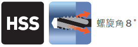 ■低螺旋溝的效能,是會截斷切屑,并順暢的排出,加工高碳鋼、合金工具鋼等調(diào)質(zhì)材的螺紋或臥式加工時,均能發(fā)揮其功效的長柄絲攻。