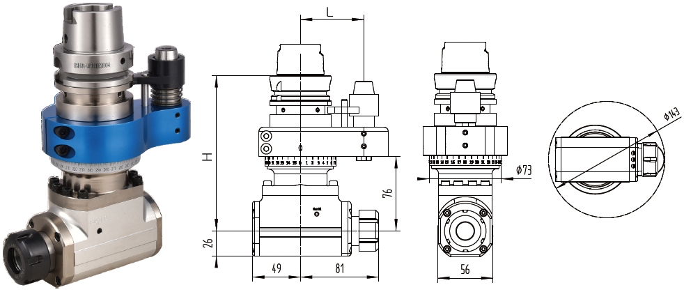 1.可自動換刀加工。2.可手動360°旋轉(zhuǎn)調(diào)整加工角度。3.輸出軸內(nèi)錐精度0.005mm。4.特殊深孔加工可定制延長座加長。