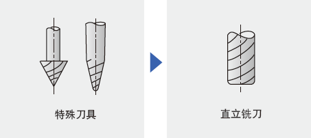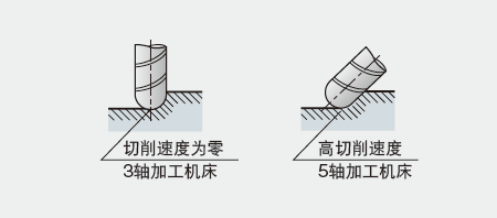 相對于加工面通過將刀具傾斜進行加工,可提高切削效率和延長刀具壽命,直接關系到成本的降低。同時,不再需要特殊形狀的刀具和安裝夾具,可以削減刀具夾具的費用。