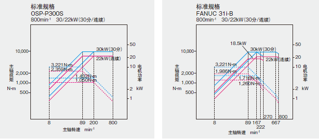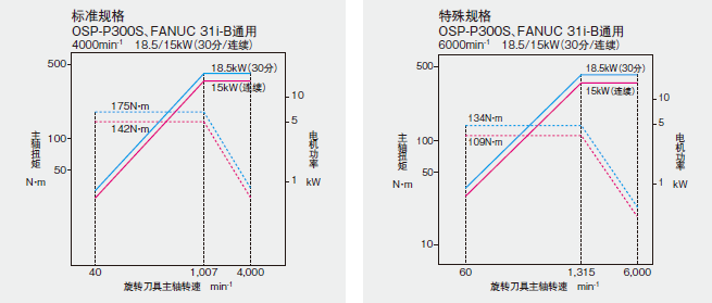 ●車削主軸轉矩是3,221/2,359N?m(30分/連續(xù)額定)(OSP-P300S)。因為是齒輪主軸可以實現(xiàn)強力切削。