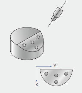 在傾斜面上的開孔加工和形狀加工等程序,只用X-Y平面程序即可,通過指令坐標回轉的中心和方向以及角度,可以進行任意軸系的坐標切換。