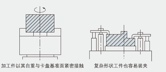 ·由于加工件以其自重與卡盤基準(zhǔn)面緊密接觸, 所以從薄型工 件到大直徑 , 重型工件 , 都可以進(jìn)行高精度穩(wěn)定的加工。