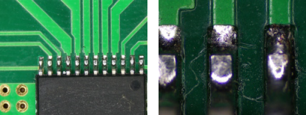 PCB板上有很多元件,并且高低不同,使用傳統(tǒng)的顯微鏡需要不斷找對(duì)位置手動(dòng)對(duì)焦,而使用XHD-AF視頻顯微鏡可通過(guò)變倍尋找目標(biāo),然后快速定焦檢測(cè)。