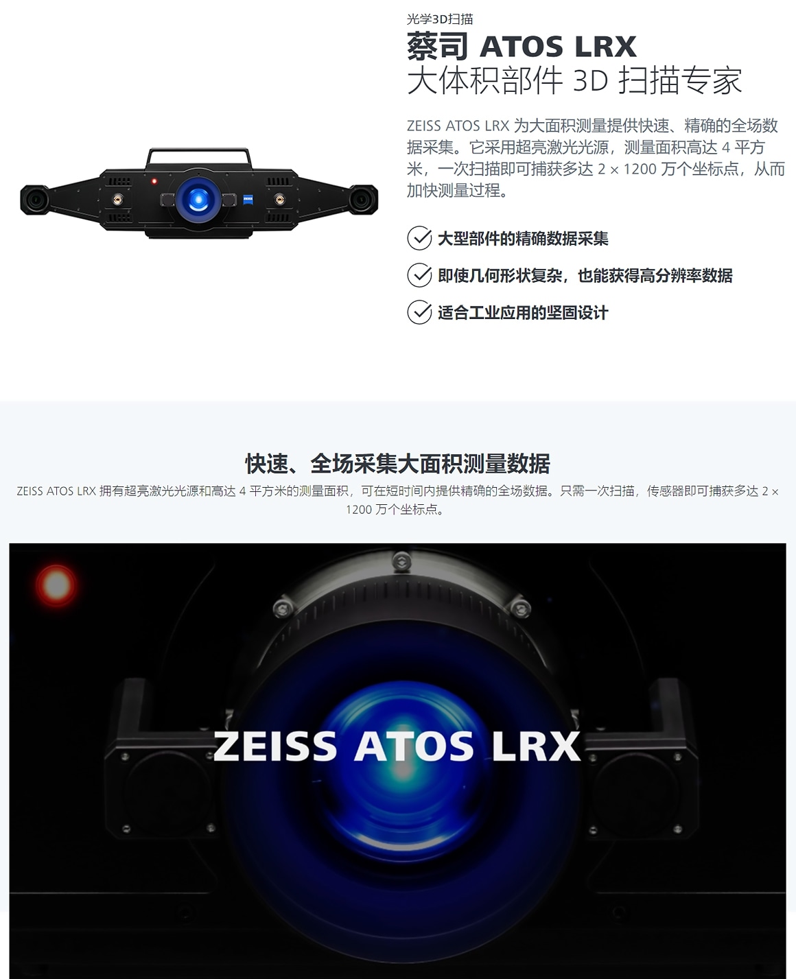 思誠自營商城客服 電話:0769-22186189在線咨詢思誠資源為您提供:ZEISS蔡司 ATOSLRX 工業(yè)光學(xué)激光3D掃描儀的采購報價、ZEISS(蔡司)ATOS LRX型號參數(shù)、規(guī)格圖片、PDF畫冊等資料,如您想了解更多關(guān)于ZEISS(蔡司)正品品牌的其他三維掃描儀資料與產(chǎn)品貨期庫存、行情價格,就在思誠資源MRO商城。
